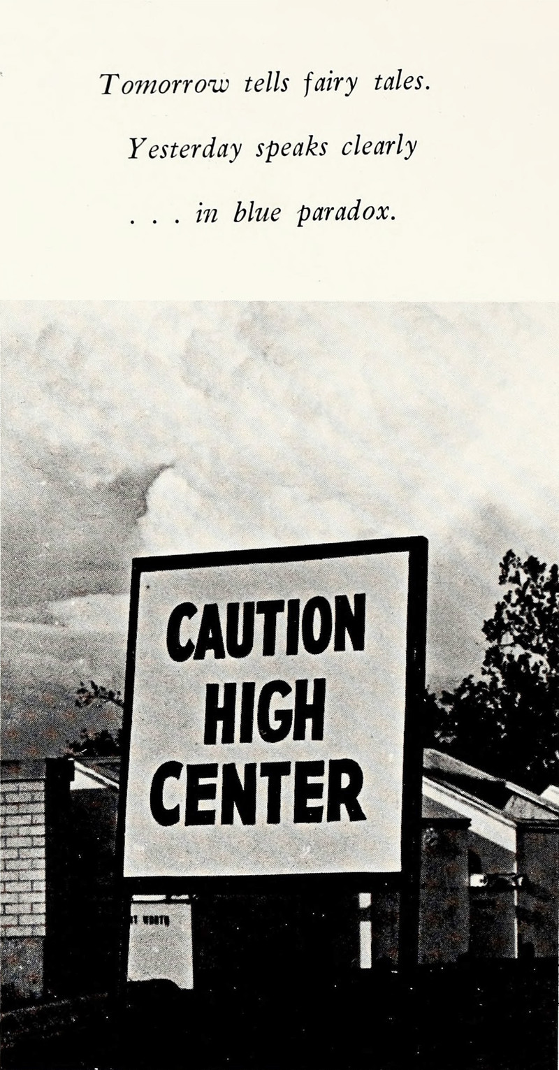 "For these are our soothsayers ... All we can see beyond the tips of our fingers. Darkness of the corners of our future." From Texas Wesleyan's 1968 yearbook.