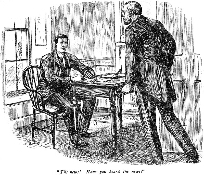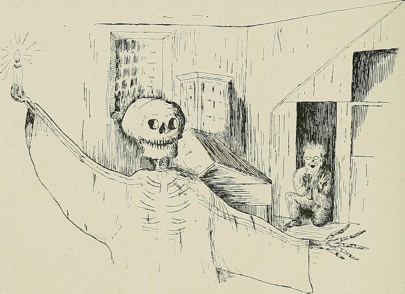 Here's "The Spectre of Tappington," in The World of Romance, 1892. The caption reads, "He whipped his legs into them in a twinkling."