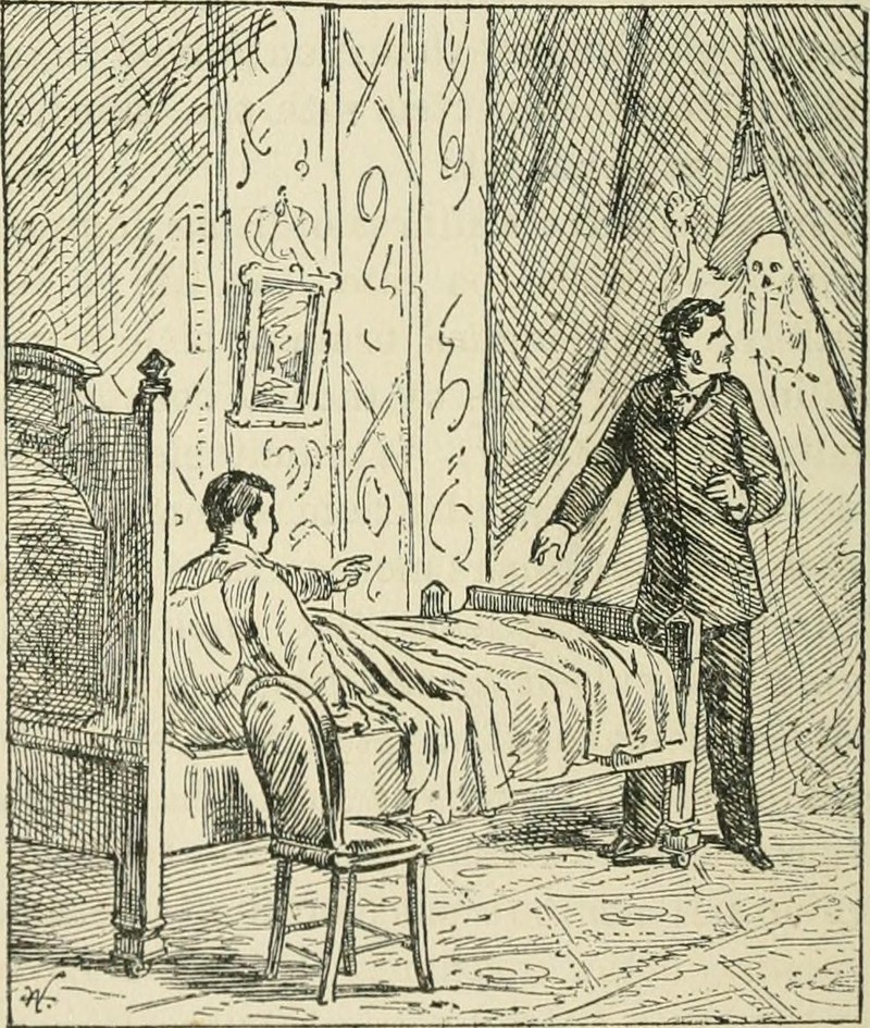 "One of the ancestral ghosts at Duncaid Castle," from Leslie's Fate; and Hilda, or the Ghost of Erminstein by Andrew Charles Parker Haggard, 1892.