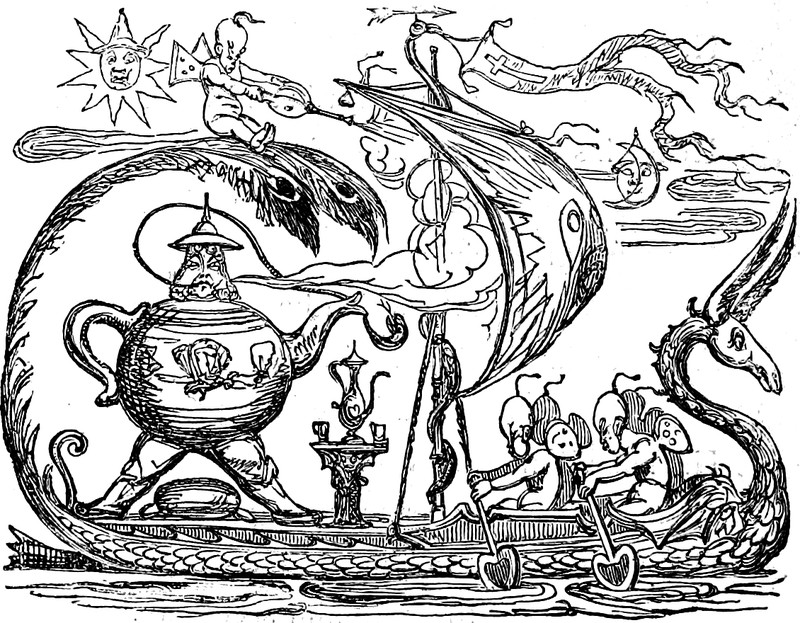 Here's the imp of the overturned goblet, doubling as an ornate capital S, from The Oxford Thackeray. This should also be of interest: How to Believe in Your Elf.
