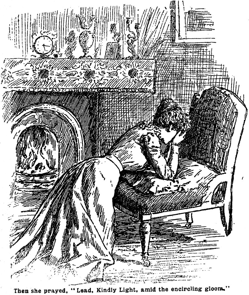 "Lucy gave way for a short time to the memory pictures which floated before her mental vision," from Thrilling Life Stories for the Masses, 1892.