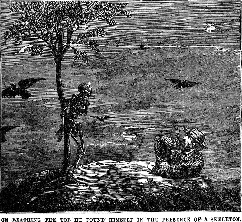 "On reaching the top he found himself in the presence of a skeleton," from Ned Kelly, the Ironclad Australian Bushranger by Edward Kelly, 1887.