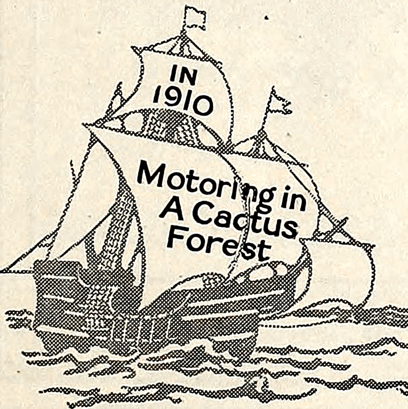 Here's a fun bit of unintentional incongruity: a reference to motoring in a cactus forest, on a ship sailing the high seas. From an ad in St. Nicholas magazine, 1910. (We say "unintentional" because the ad features several ships' sails as frames for the titles of upcoming publications.) See This Book is a Cactus.