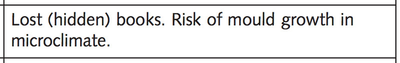 The British Library's Prevention Advisory Centre reminds us that even "lost (hidden)" books are vulnerable to "mould growth in microclimate." There's a long British tradition of concern with the unseen, going back not only as far as Shakespeare but Chaucer as well.