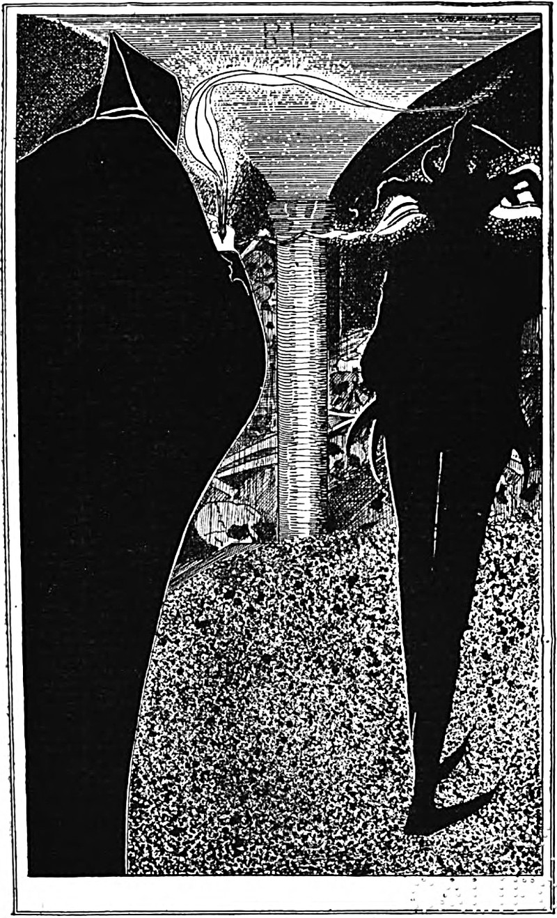 "The young woman turned in the fugitive flare to wave a hand." From Harper's magazine, 1917.