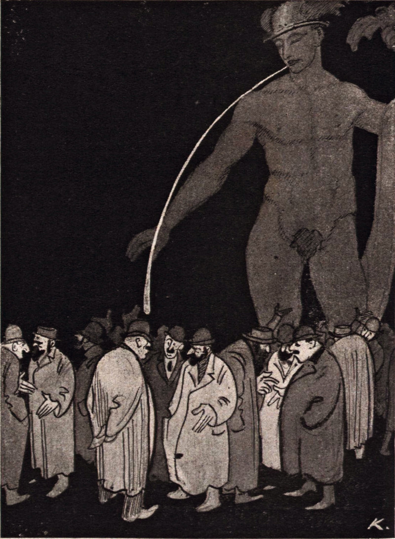 "Behind him boomed the vast laughter of Sant' Anna." From Harper's magazine, 1917.