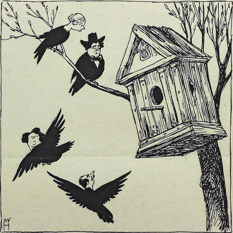 Perhaps this puts a lump in your throat, too. Usually, one finds musical birds on the lines of a music staff, as if they're perching on telephone wires. But here's what happened to the birds. From Lenoir-Rhyne's 1915 yearbook.