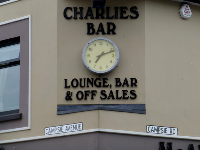 The city of An Oghmagh, Northern Ireland seems to exist within a rift in the fabric of time/space. Temporal anomalies documentarian Kenneth Allen offers three proofs. The first occurs at the troubling intersection of two streets with the same name (that's always playing with fire), and the clock (four hours early) is situated below a word missing its apostrophe. (Grammatical anomalies may, for reasons still foggy, trigger temporal anomalies all on their own.) Two "Campsie" streets, two (or more?) "Charlies" ... it's all a lot for the time to keep up with. The second proof is of a clock that proclaims "3:17" at 11:00 a.m. The third proof is of a clock displaying "6:15" at 11:30 a.m. For any would-be time travelers, An Oghmagh offers a city-wide portal.