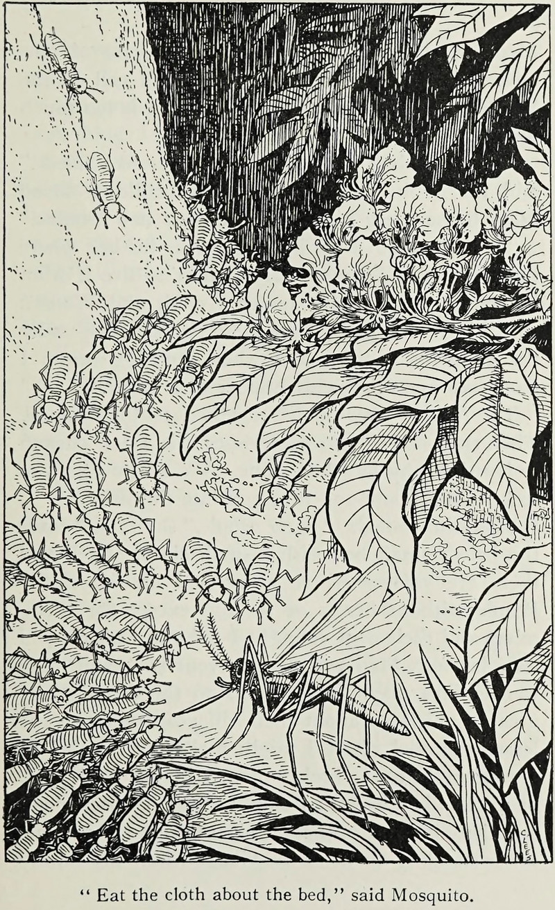 "'Eat the cloth about the bed,' said Mosquito." From Talking Woman by Jean Kenyon Mackenzie, 1939.