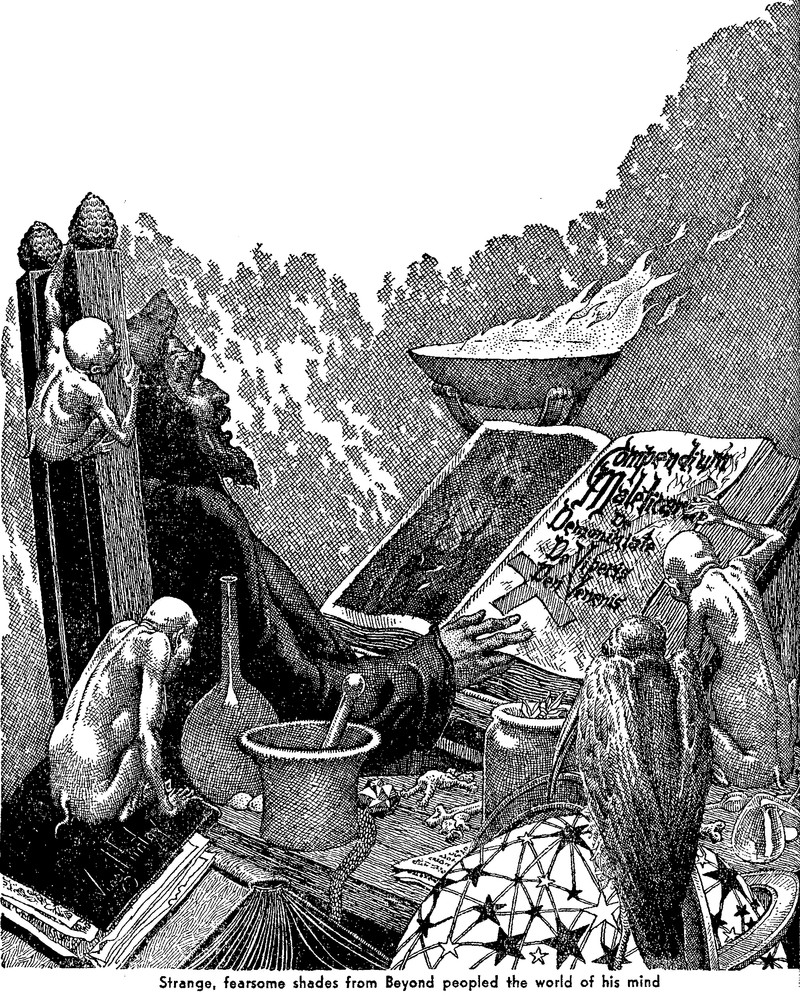 "Strange, fearsome shades from Beyond peopled the world of his mind." From Amazing Stories, 1943.