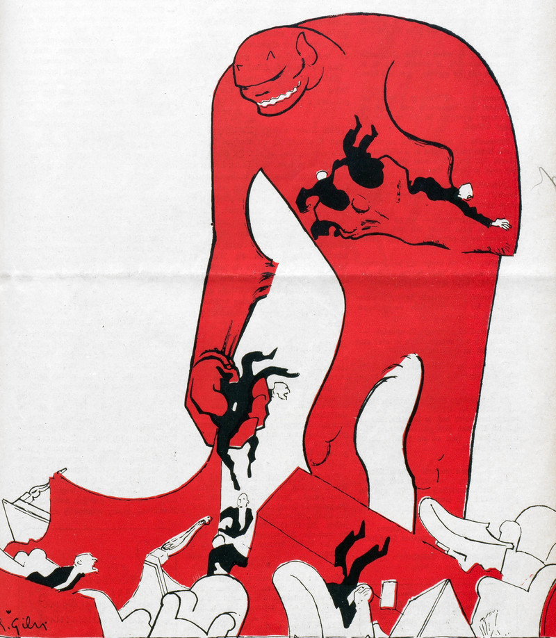 Laughing their heads off. From Nebelspalter, 1938.