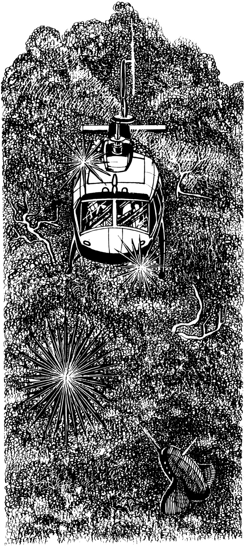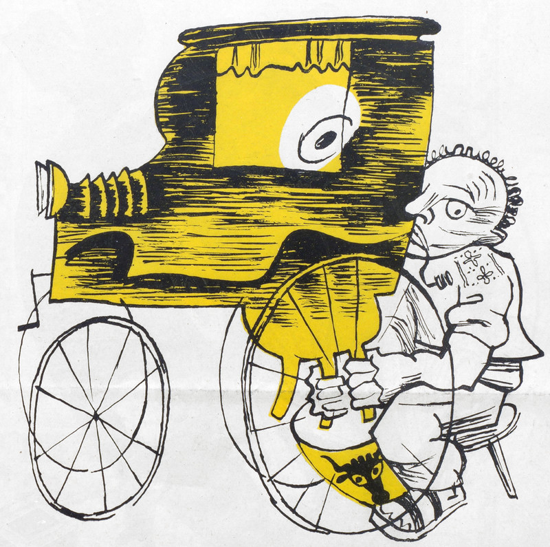 Nice impressionistic effect from scanning a photocopy of newsprint. "Driver yields to visiting UFO." From UFO Newsclipping Service, 1975.