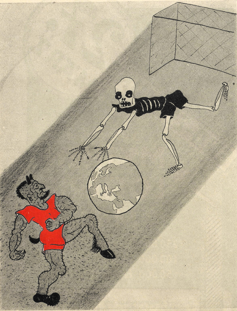 The grim reaper as Don Quixote. From Nebelspalter, 1938.