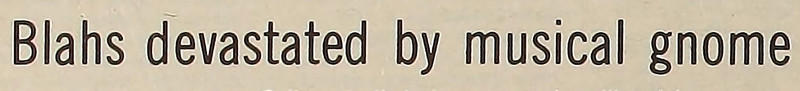 How true these words are, even today: "Blahs devastated by musical gnome." These techniques work for musical gnomes, too: How to Believe in Your Elf.