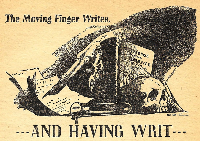 "The moving finger writes, and having writ ..." From Unknown magazine, July 1940.
