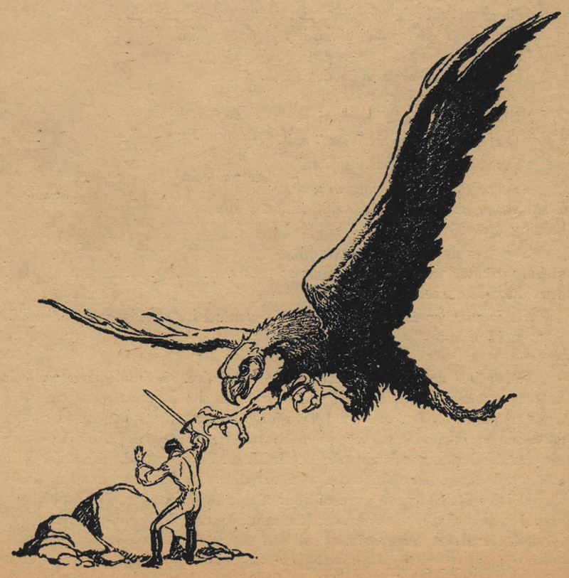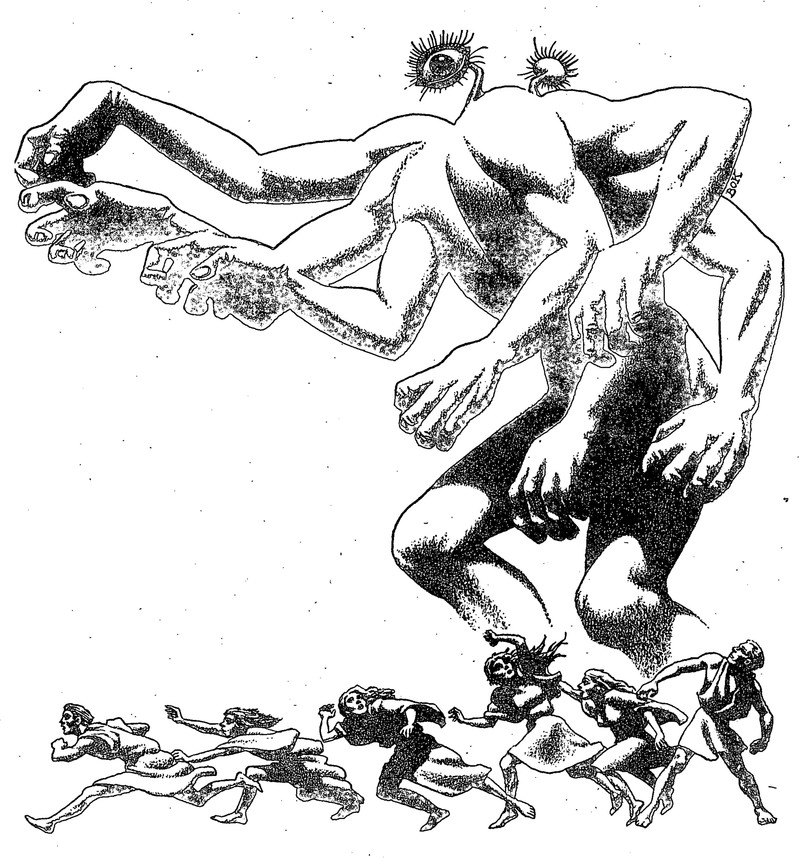 "Night must not come." An illustration by Boris Dolgov. From Weird Tales, 1943.