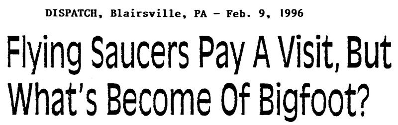 "Flying saucers pay a visit, but what's become of Bigfoot?" From UFO Newsclipping Service, 1996.