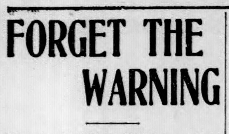"Forget the warning." From The Duluth Evening Herald, 1908.
