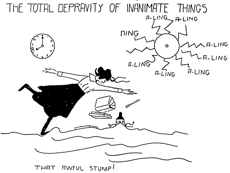 A cobweb-decorated broom. From St. Nicholas magazine, 1888.