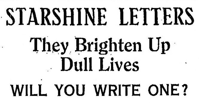 "Starshine letters. They brighten up dull lives. Will you write one?" From The Children's Newspaper, 1930.