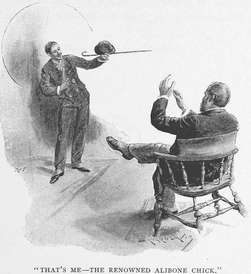 An illustration from Our English Cousins by Richard Harding Davis (1894). The caption reads: "People one knows take one for a butler."