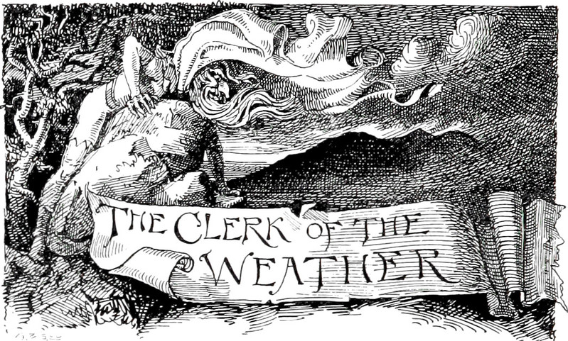 An 1895 illustration from the Irish fairy legend of Daniel O'Rourke. The caption reads: "'Good morning to you, Daniel O'Rourke,' said he."