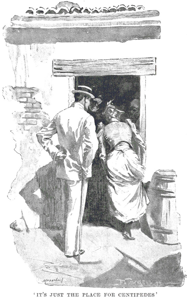 Our illustration is from The Captive of Pekin by Charles Hannan, 1897. The caption reads, "Yet again he threw the coat."