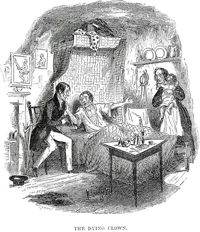 His face had been white as a ghost for weeks, but no one had given it a second thought. From The Letters of Charles Dickens (1893). The caption reads: "The dying clown."