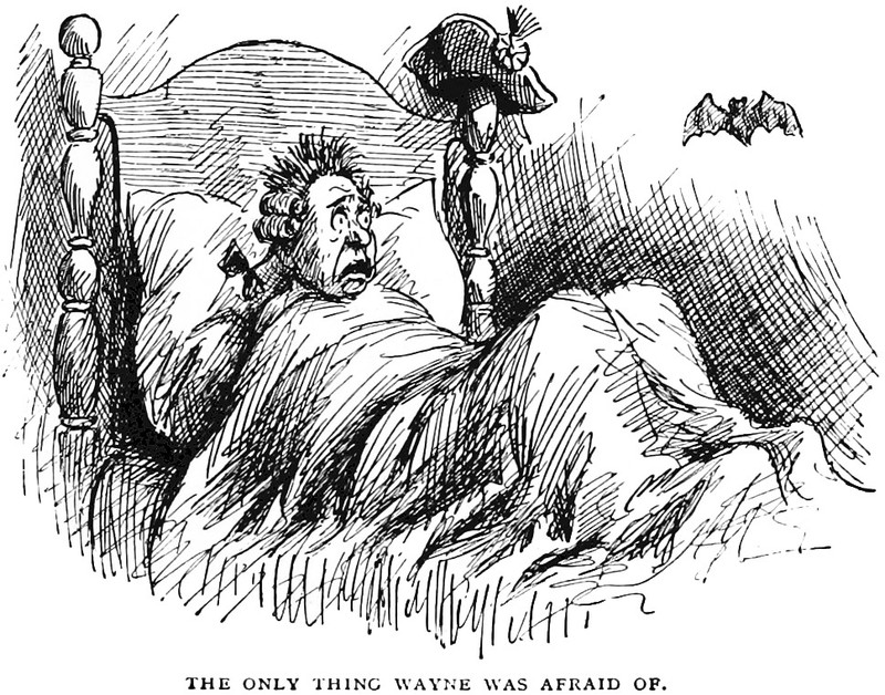 Illustration by F. Opper from Bill Nye's History of the United States (1894). The caption reads: "The only thing Wayne was afraid of."