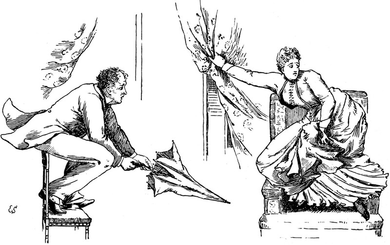 Things haven't changed much in the last 120 years. From Stories from the Diary of a Doctor (1894). The caption reads: "The contents of the paper puzzled him."