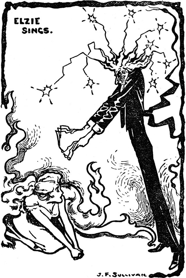 An illustration from Belial's Burdens by James Frank Sullivan (1896). The caption reads: "Elzie Sings."