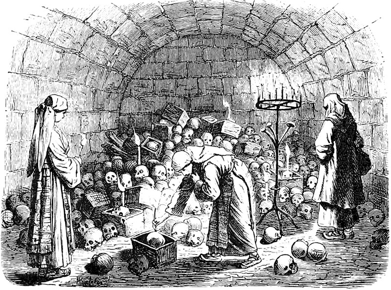 An illustration from Vikram and Vampire by Richard F. Burton (1893). The caption reads: "He was playing upon a human skull with two shank bones."