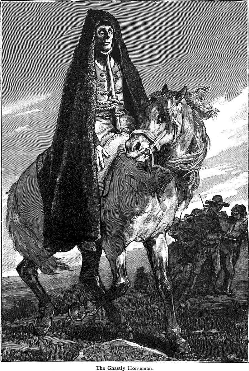 An illustration from Maid Marian and Crotchet Castle by Thomas Love Peacock (1895). The caption reads: "The devil in the likeness of a tall friar."