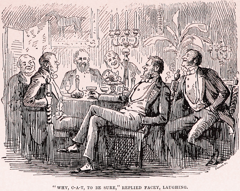 "'Why, C-A-T, to be sure,' replied Facey, laughing." From Mister Facey Romford's Hounds by Facey Romford, 1865.