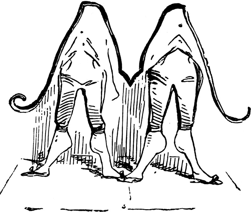 Capital M has four legs with extraordinarily well-developed calves, from The Oxford Thackeray.