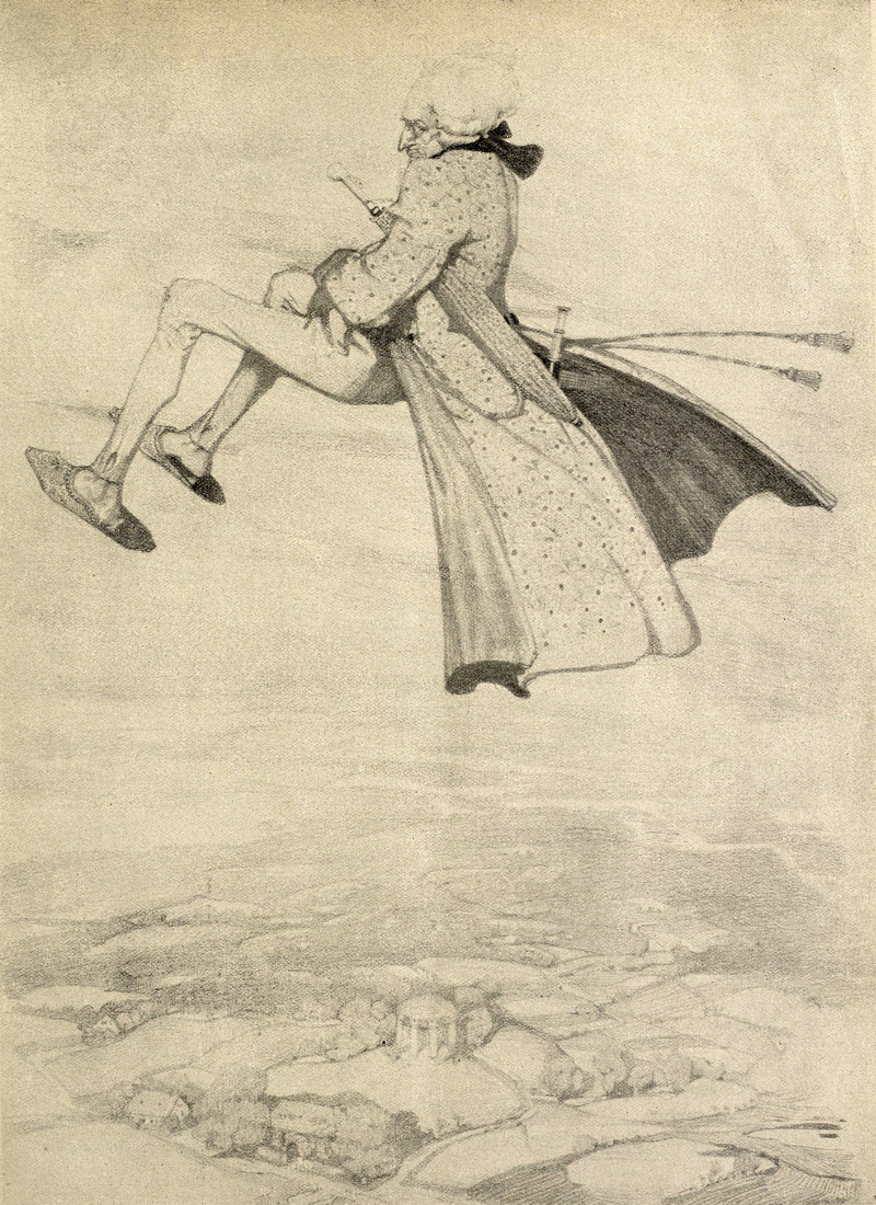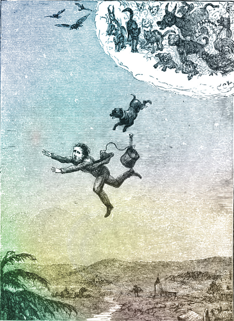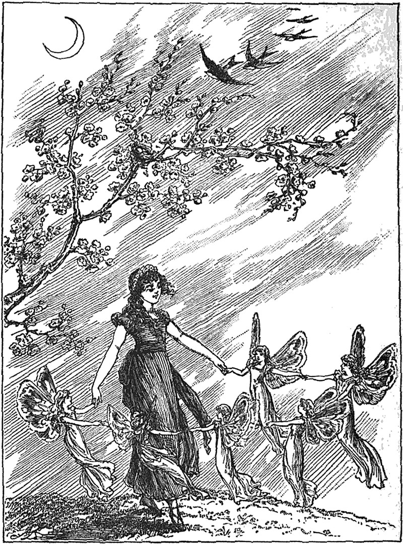 "The boy flying away in the moonlight." From Autumn Leaves by Christie Crust, 1875.