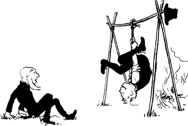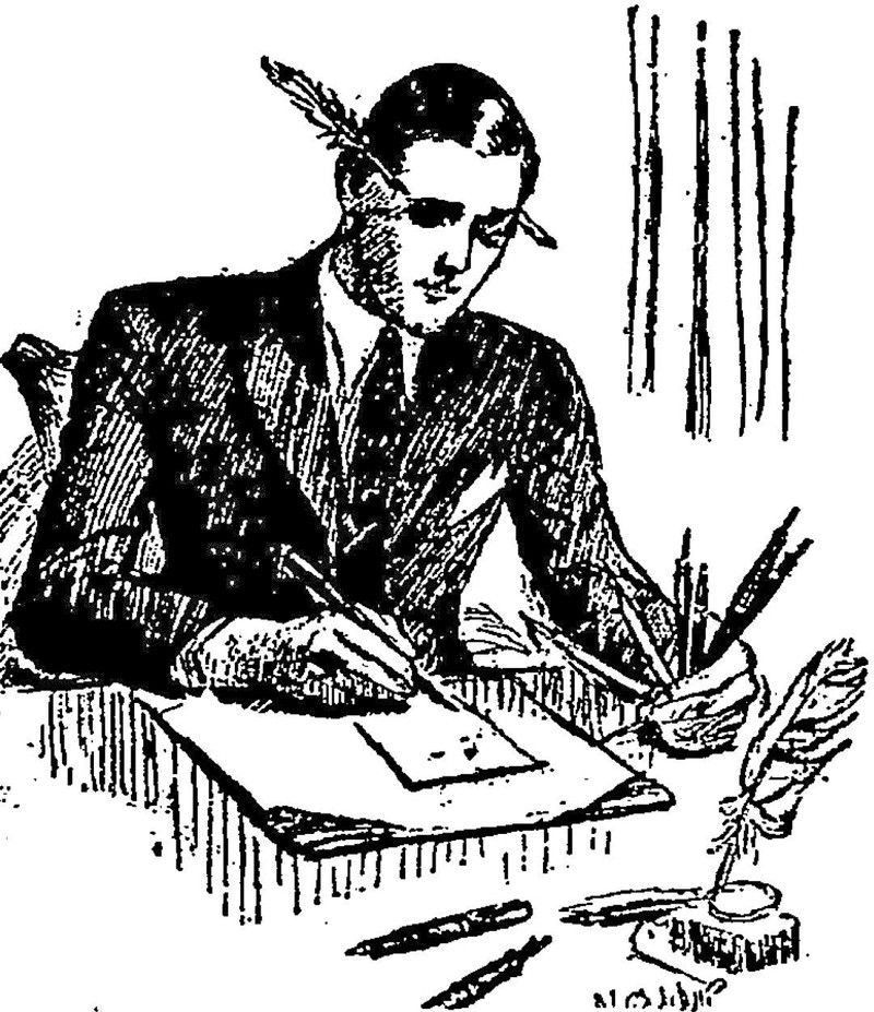 The old quill-pen-through-the-head trick. From Le Journal Amusant, 1932.