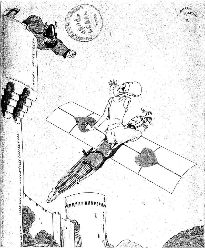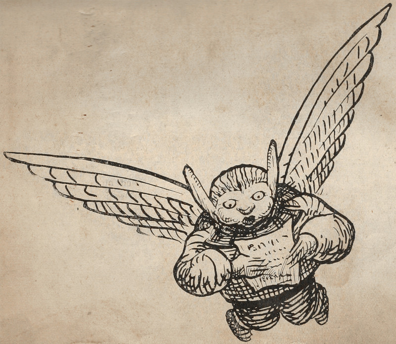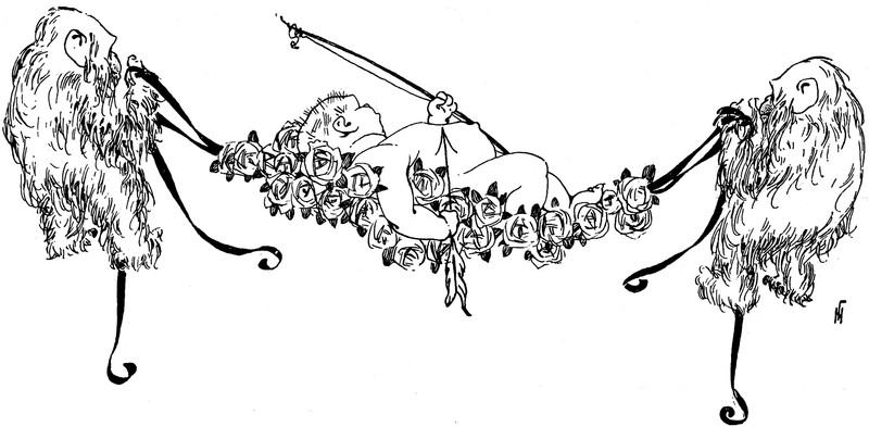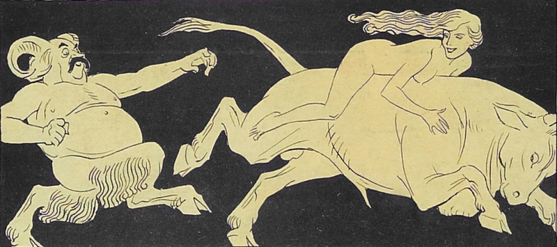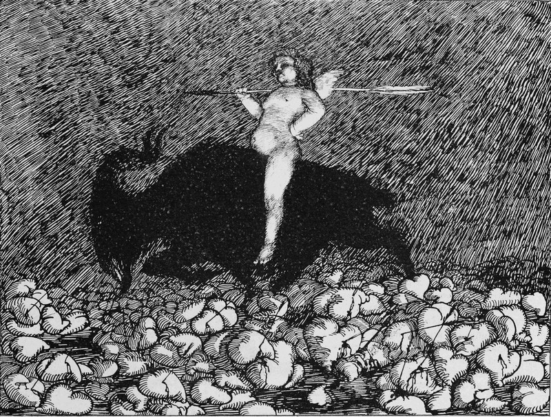 Here's how the daimon Cupid gets around. From Satirikon, 1908.