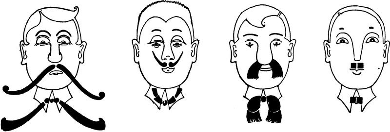 Mustaches to match neckties. From The Judge, 1922.