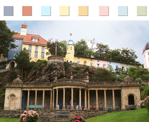 If Rainbows Were ArchitectureWhat happens when an eccentric architect has the soul of a painter? He drafts a technicolor blueprint and creates elaborate canvasses out of brick and mortar. Portmeirion, the celebrated Italianate village on the west coast of Wales, and famous location of the 60’s cult television series " The Prisoner,” was built by Sir Clough Williams-Ellis as a retirement project. The fairy-tale hamlet he created (30 years before Disneyland) is like a three-dimensional picture postcard exhibiting an unparalleled array of colors. Portmeirion is often cited as an example of "picturesque architecture.” Picturesque simply means that something is proper to be pictured. In the picture that is Portmeirion, foreground and background are the real ground of a rainbow we can walk through. [Read the entire article in my guest blog at Colourlovers.com.]