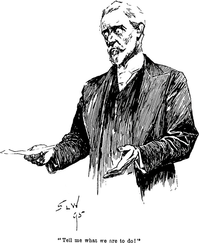 An illustration from A Bid for Fortune by Guy Newell Boothby (1895). The caption reads: "Tell me what we are to do!"