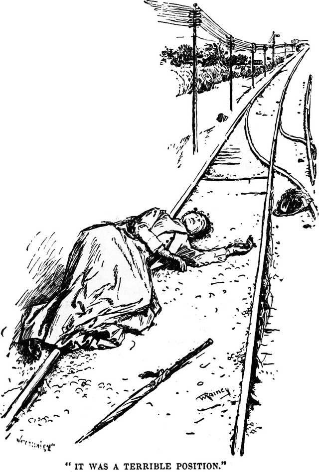 An illustration from Illustrated Penny Tales From the Strand Library (1894). The caption reads: "It was a terrible position."