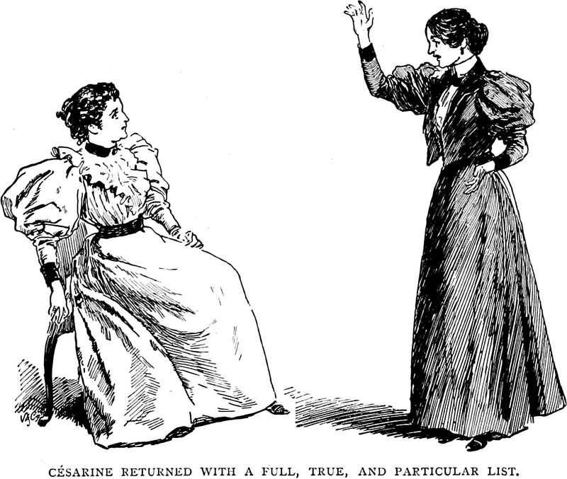 An illustration from An African Millionaire by Grant Allen (1897). The caption reads: "Césarine returned with a full, true, and particular list."