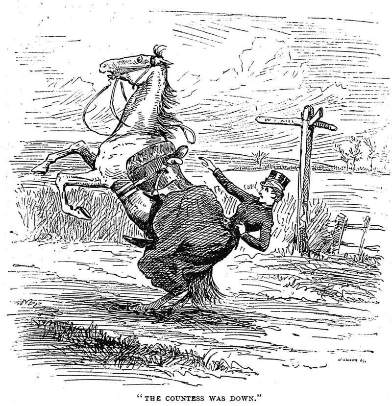 Here's a precursor to the 1920's idiom 'down for the count,' from The Jorrocks Edition by Robert Smith Surtees (1892). The caption reads: "The countess was down."