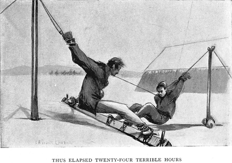 An illustration from In the Forbidden Land by Arnold Henry Savage Landor (1898). The caption reads: "Thus elapsed twenty-four terrible hours."