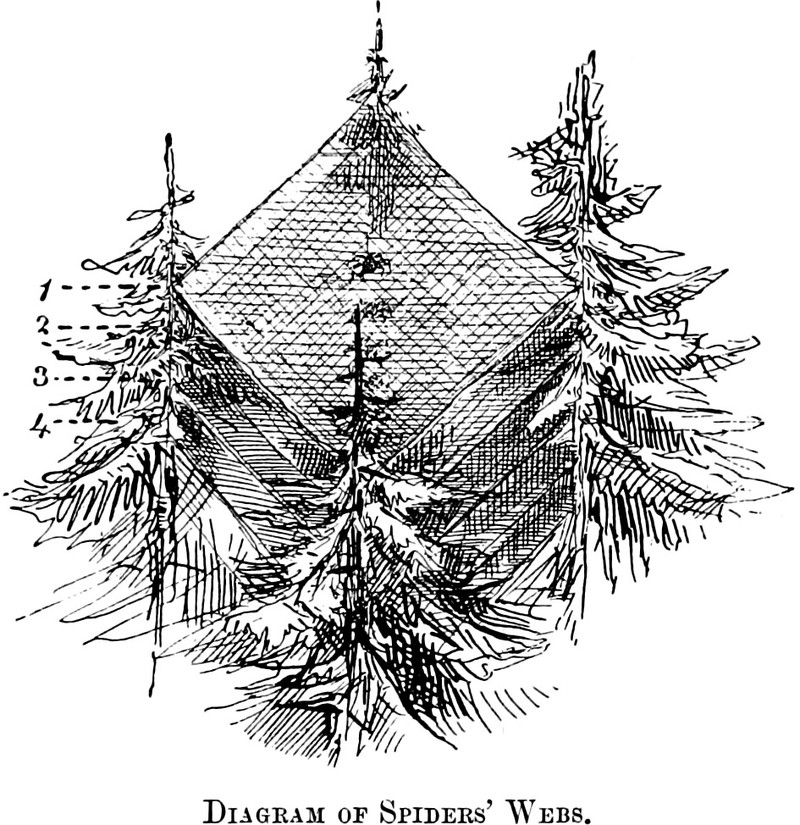 An illustration from Story of the Rear Column of the Emin Pasha Relief Expedition by James S. Jameson (1890). The caption reads: "Diagram of spiders' webs."
