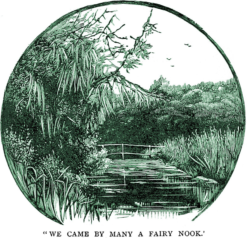 An illustration from The Child's Own Poetry Book by Horace George Groser (1887). The caption reads: "We came by many a fairy nook."