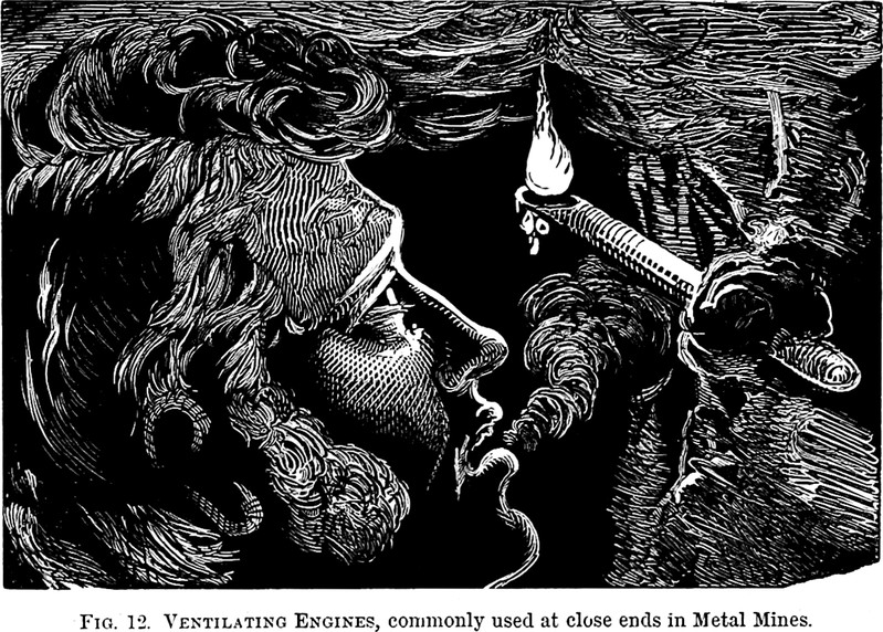 "Ventilating engines, commonly used at close ends in metal mines," from Frost and Fire by John Francis Campbell, 1867.