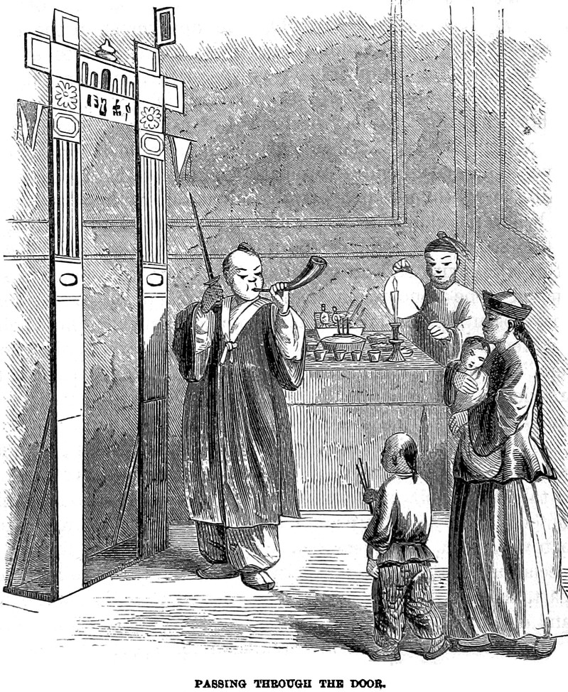 "Passing through the door," from Social Life of the Chinese by Justus Doolittle, 1867.