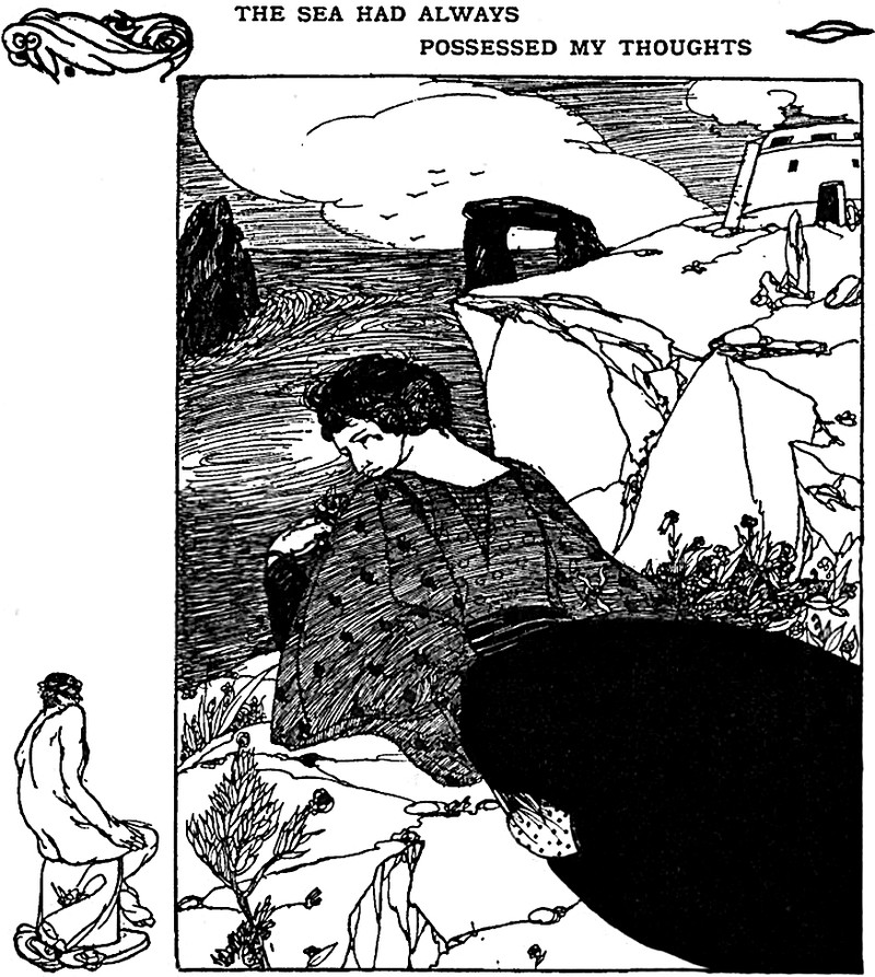 "The sea had always possessed my thoughts": an illustration by Austin Osman Spare for Behind the Veil by Ethel Wheeler (1906).